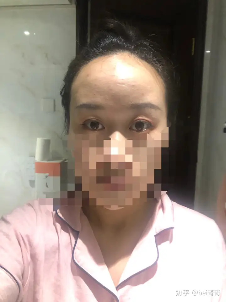 当天是带着防尘帽回去的,整个人也肿了一些,在术后七天,只要是出门就要带防尘罩,因为怕种植区和取发区感染灰尘。(那些说当天下午可以上班的人、我想问问,先不说多疼,就带着这东西,怎么去上班?别人不会把你当傻子一样嘛?)