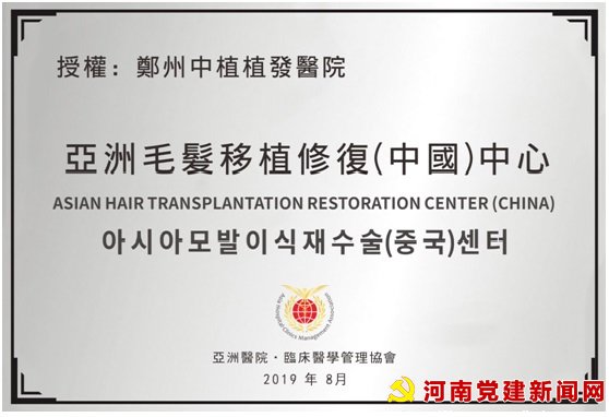 2019年8月,总部位于韩国的亚洲医院.临床医学管理协会,以独具的慧眼、严格的考评,对郑州中植植发医院的专家、医护人员等进行了专业的访谈,并审核了相关的SCI、中国管理科学研究院的获奖证书等。通过了对郑州中植植发医院学术地位与植发水平的认定,在中国管理科学研究院专科医学发展研究中心韩晓峰主任的见证下,授权其成为该协会在中国的毛发移植修复中心,这也是中国植发医院的首个亚洲级别的植发修复中心!
