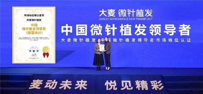 全球权威咨询机构弗若斯特沙利文(Frost & Sullivan)为大麦微针植发颁发市场地位认证证书
