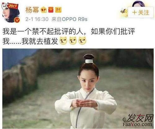 可能你会觉得,说了这么些,怎么都说外国人,能不能说点中国人,其实真不可以,因为外国人我可以随便说,但是中国明星如果我说了,就会找麻烦。不过也可以举个例子,杨幂,请留意上图中的文字,如果植发的危害确实存在的话,那么杨幂不会说要去植发,相反她会让大家千万不要植发。