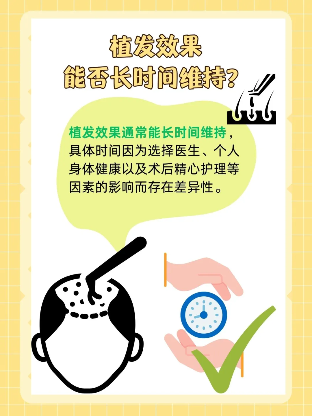在体质优良、护理得当且疾病控制稳定的情况下,植发效果可以长达15-20年甚至永久。然而,若体质较差、护理不周或疾病控制不佳,则可能缩短至5-10年。