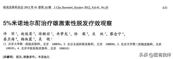 临床皮肤科杂志 2012年41卷第10期上,刊登了一项临床试验:《5%米诺地尔配治疗雄激素性脱发疗效观察》