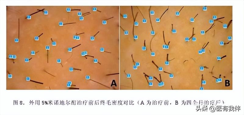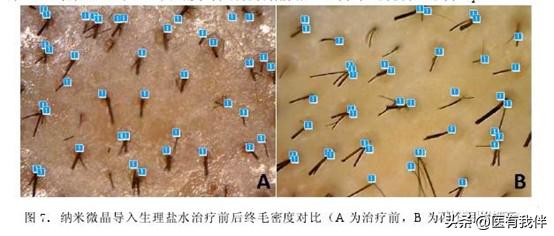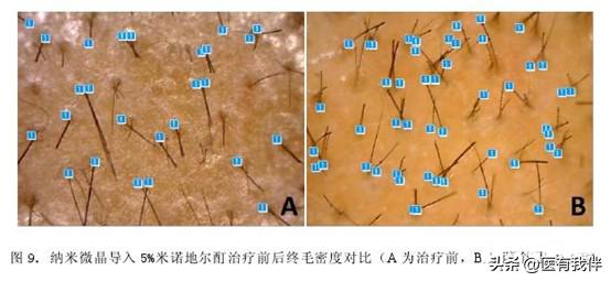 (3)用纳米微晶导入5%米诺地尔治疗,要比外涂米诺地尔效果更好一些,说明米诺地尔吸收更全面,生发效果会更好。