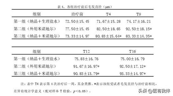 另一个是来自《纳米微晶联合 5%米诺地尔酊治疗雄激素性脱发的研究》这篇论文中的实验,这个使用有3组研究对象: