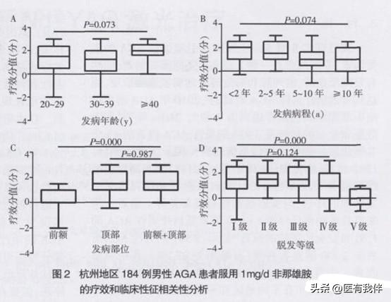 临床皮肤科杂志2014年43卷第3期上,刊登了一项临床试验:《非那雄胺1mg/d治疗杭州地区184例 男性雄激素性秃发患者的疗效观察》