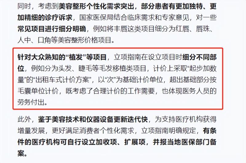 “针对大众熟知的“植发”等项目,立项指南在设立项目时细分不同部位,例如分为头发、睫毛等毛发移植类项目,计价上采取“起步加数量”的“出租车式计价方案”,以“次”为基础计价单位,超出基础部分按毛囊单位计价” 央视新闻客户端一则重磅消息,瞬间引爆毛发医疗行业。